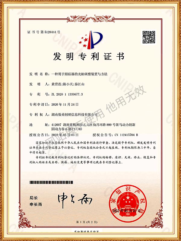 發明專利 一種用于跟蹤器的光軸調整裝置與方法