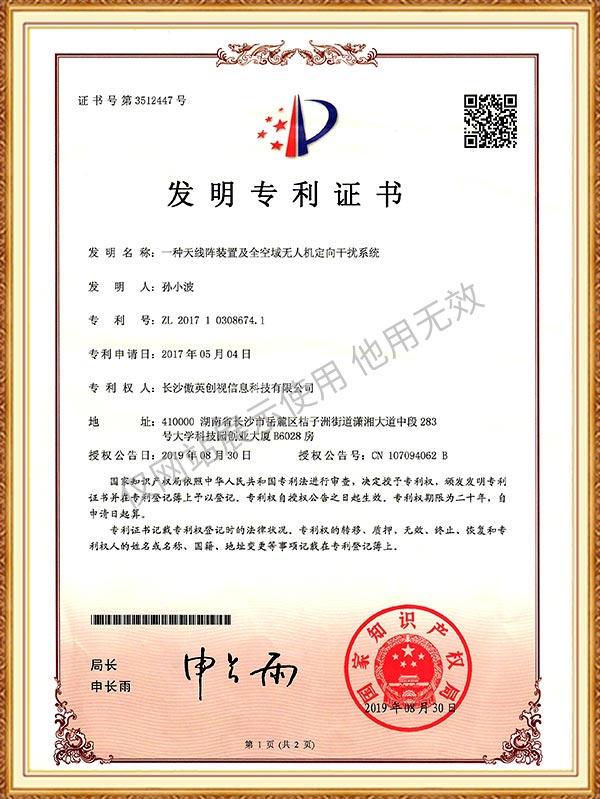 發明專利 一種天線陣裝置全空域無人機定向干擾系統